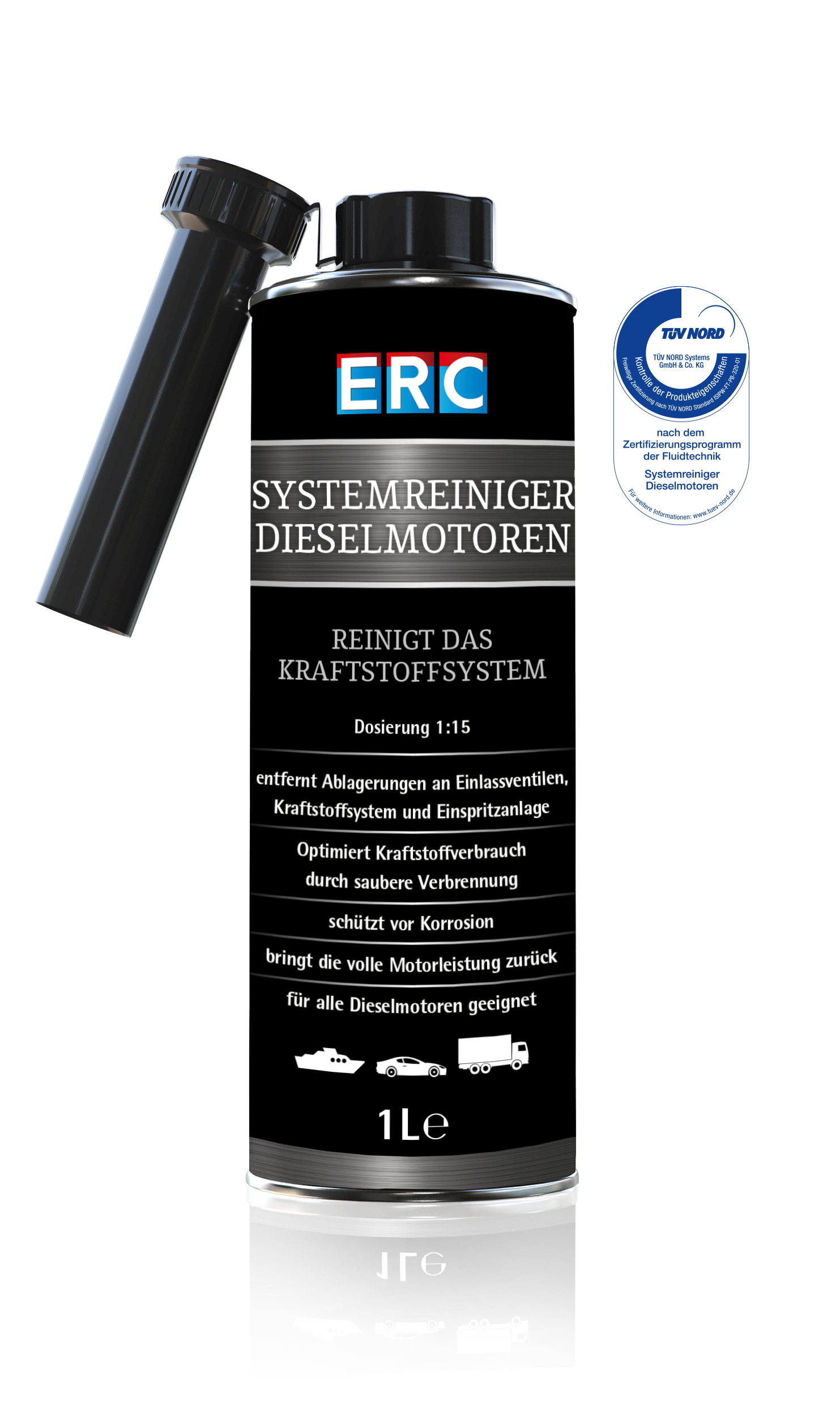 ERC System Reiniger Dieselmotoren eröffnet einen einfachen Weg zum sauberen Motor und zu geringerem Verbrauch. Er löst typische Verunreinigungen in Dieselmotoren und beugt neuen Verschmutzungen vor.